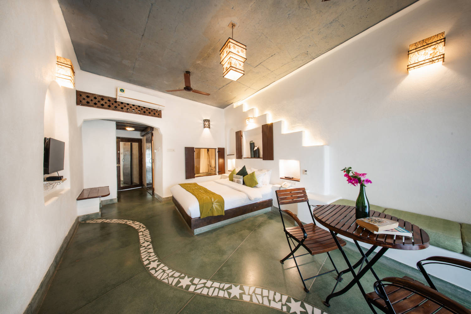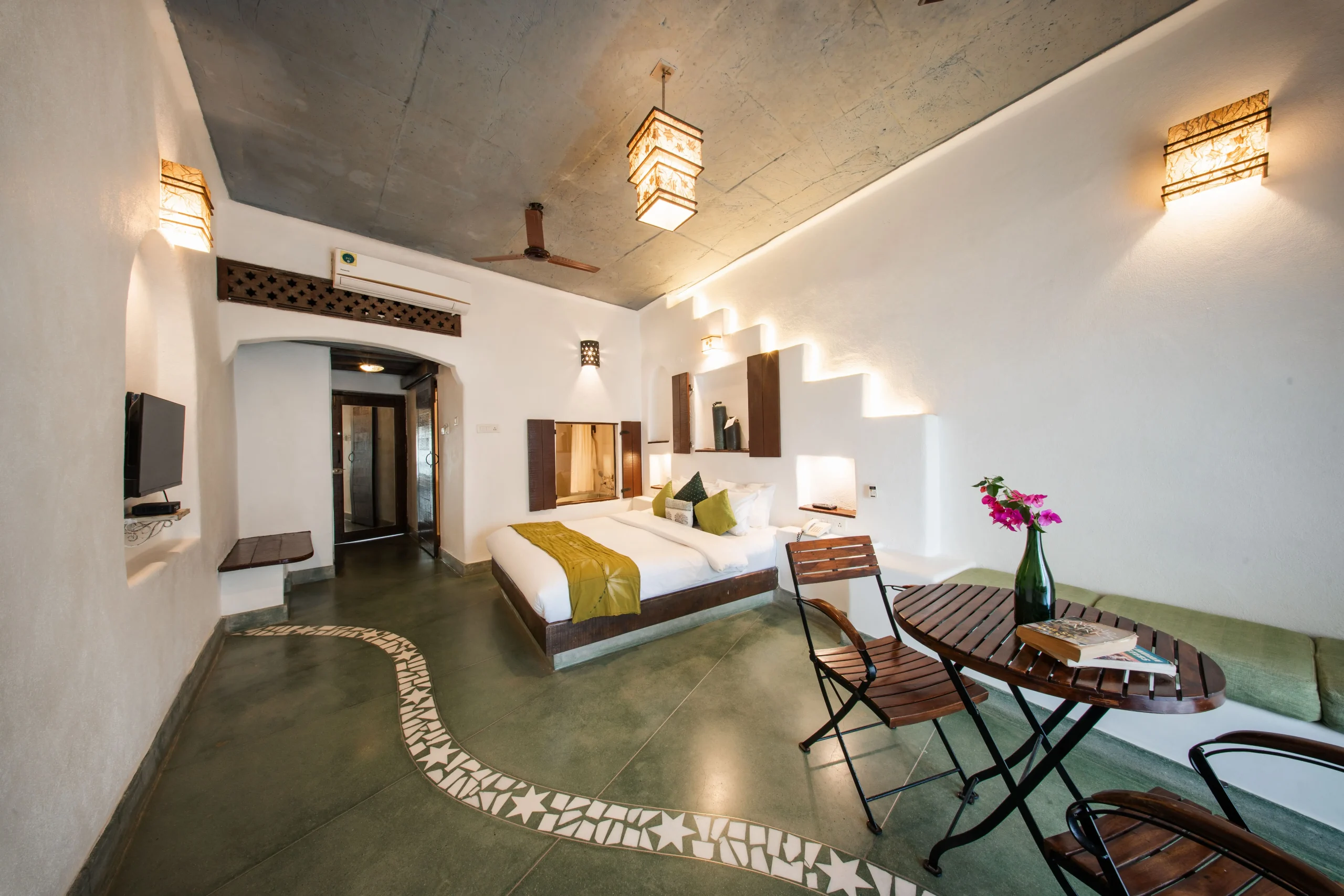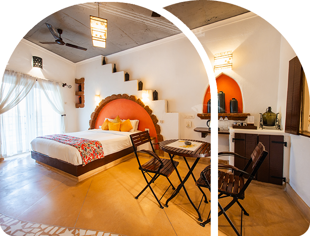 Each of the aesthetically appointed 20 rooms, include ZORBA the suite and IVA the deluxe rooms. Vibrant colours and custom-designed furnishings, in-situ beds and floors in the rooms at the MYKONOS BLU RESORT Goa spell beauty in simplicity with a rare earthen charm.