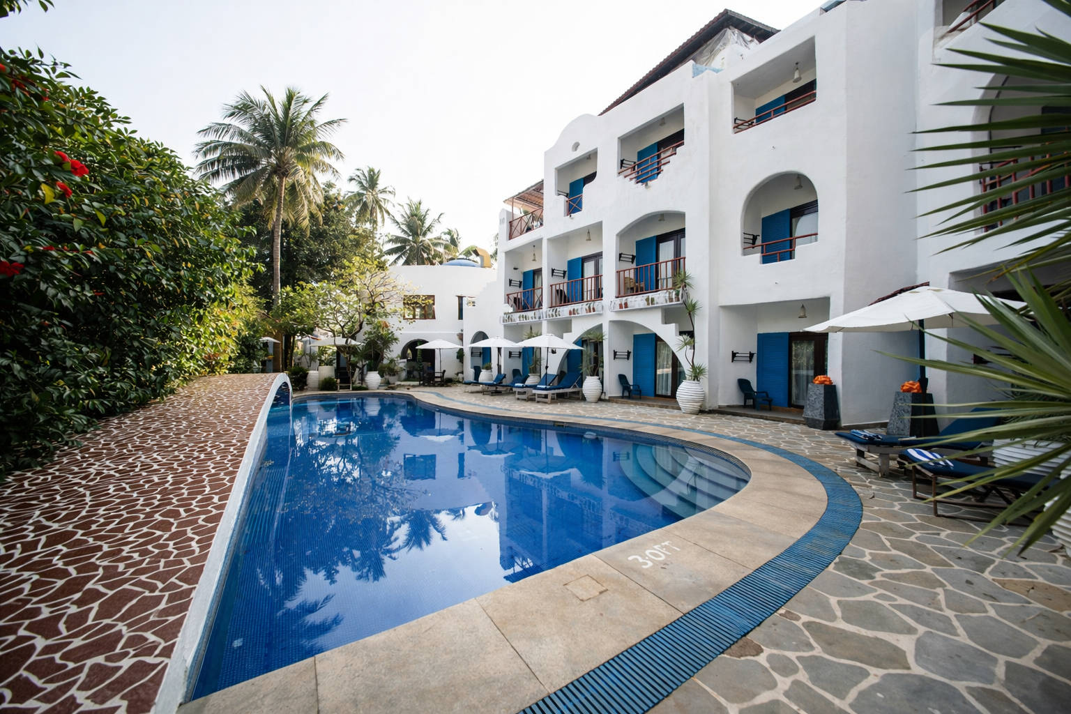 Behold the colours that overwhelm you when you step into the environs of Mykonos Blu at Baga, Goa. The stark white walls and breathtaking spread of blue characterize the place. Each of the aesthetically decorated 20 rooms, with one twin and a duplex room features vibrant colours and custom-designed furnishings for your luxurious accommodation in Goa..
